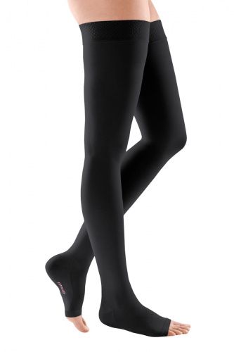 Компрессионные чулки 2-ого класса компрессии mediven plus с открытым носком и силиконовой резинкой как универсальное решение в лечении заболеваний вен.