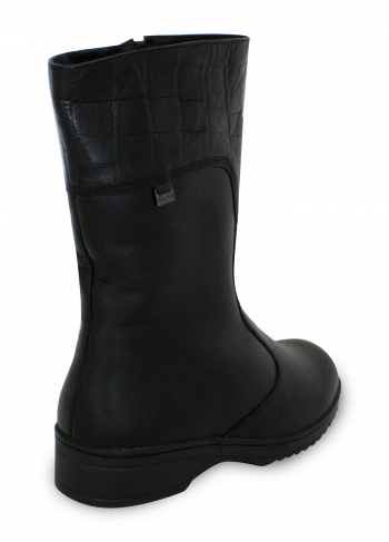 Лечебную обувь снабжают более плотным задником, имеющим специальную форму, его производят из термопласта. Уплотненная задняя часть не меняет форму даже спустя длительное время, что дает возможность надежно фиксировать пятку в естественным положении. В комплекте к таким сапогам предлагают стельку анатомического типа, она мягкая и ее можно вынимать.